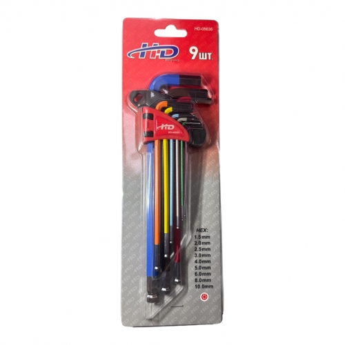 Ключи шестигранные с шариком 1,5-10мм удлиненные разноцветные (набор 9шт.) CrV "H-D"