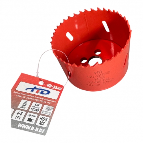 Коронка биметаллическая по металлу и дереву 68мм., L38мм., 5/8"-18UNF, HSS M3 "H-D"