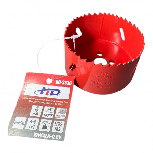 Коронка биметаллическая по металлу и дереву 76мм., L38мм., 5/8"-18UNF, HSS M3 "H-D"