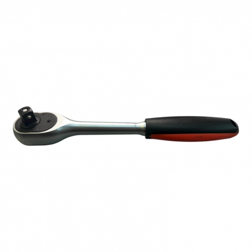 Прямая трещотка для головок 1/2", длина 255 мм. Оснащена быстроразъемным соединением и переключателем направления вращения.