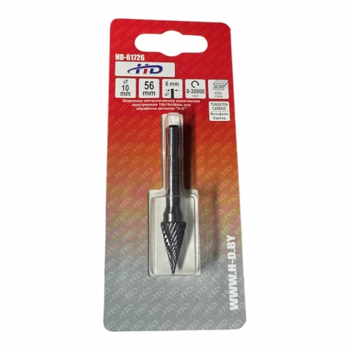 Шарошка металлическая коническая заостренная 10х18x58мм для обработки металла "H-D"