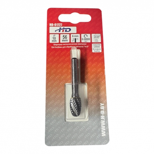 Шарошка металлическая овальная 10х10x50мм для обработки металла "H-D"