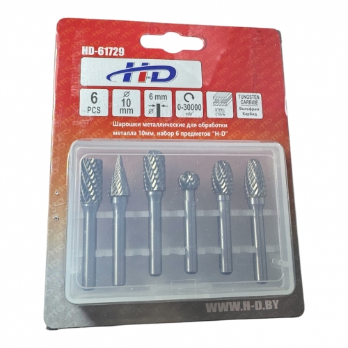 Шарошки металлические для обработки металла 10мм, набор 6 предметов "H-D"