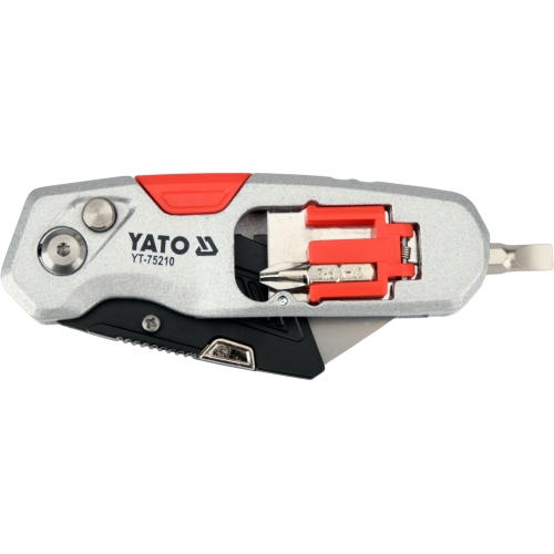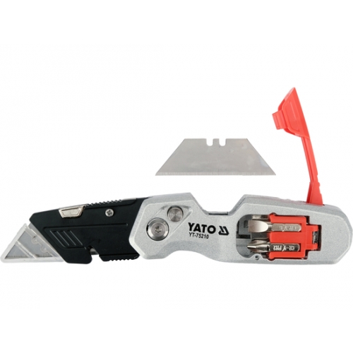 Нож монтажный складной с выдвижным сменным трапециевидным лезвием SK5, Al, TPR, 3 лез, 2 биты "Yato"