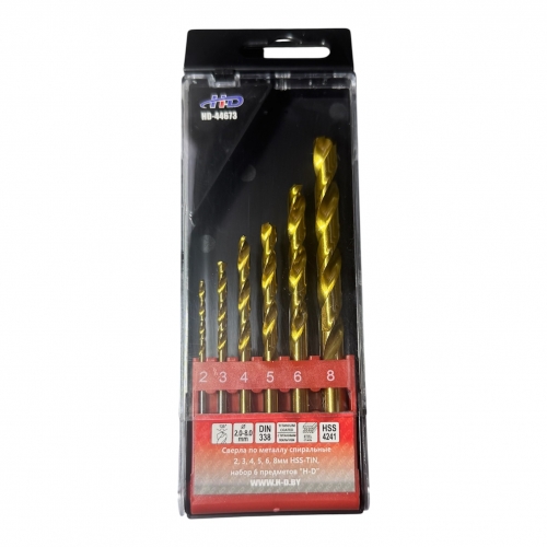 Сверла по металлу спиральные 2, 3, 4, 5, 6, 8мм HSS-TiN, набор 6 предметов "H-D"
