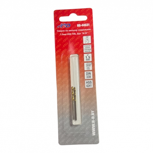 Сверло по металлу спиральное 1.5мм HSS-TiN, 2шт "H-D"