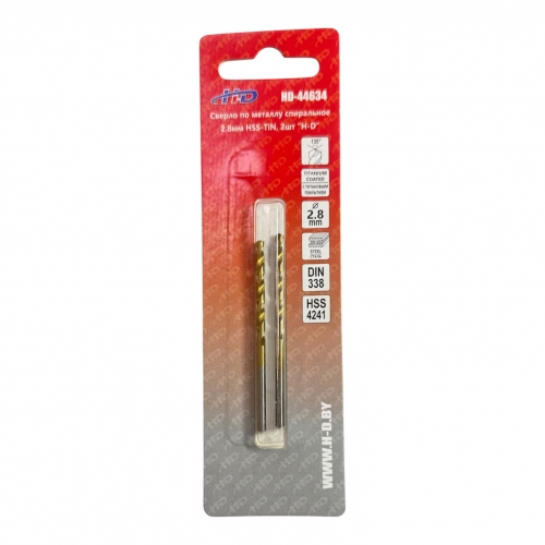 Сверло по металлу спиральное 2.8мм HSS-TiN, 2шт "H-D"